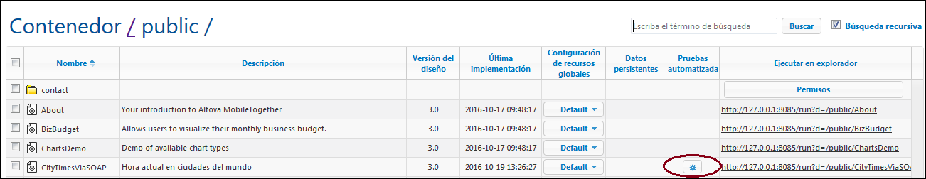 Implementar casos de prueba en el servidor MobileTogether Server