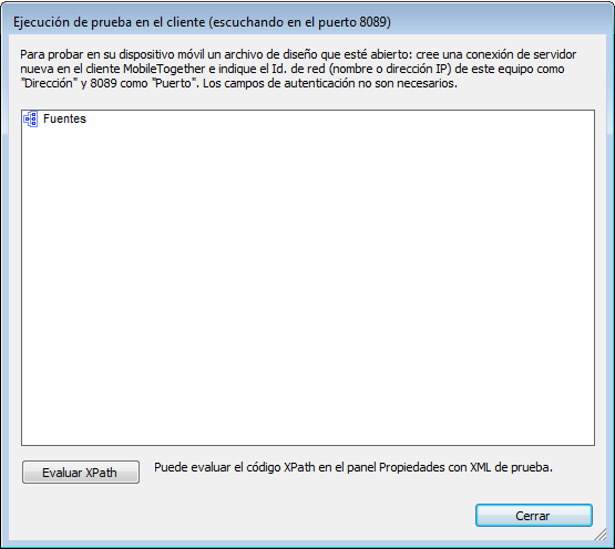 •En MobileTogether Designer seleccione Herramientas | Opciones | Ejecución de prueba en el cliente y después establezca un puerto distinto para la comunicación con el cliente (p. ej. 8089).