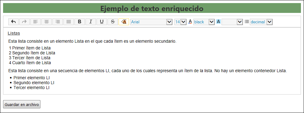 El texto que contiene un control de texto enriquecido se muestra en todos los dispositivos clientes. Los estilos se definen en la hoja de estilos asignada a ese control. En clientes web y Windows, el usuario final también puede editar el contenido del texto. Esta sección describe cómo editar texto enriquecido en un cliente web o Windows.