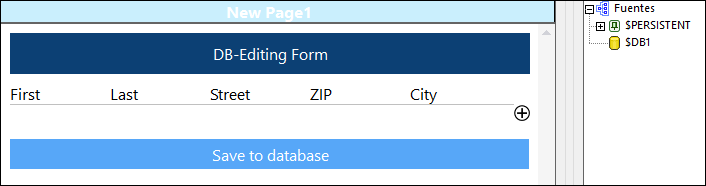 •Puede añadir un registro nuevo (una fila) a la tabla y editar sus campos. Para añadir una fila nueva haga clic en el icono Más que hay a la derecha de la última fila (imágenes anterior y siguiente). Una vez haya añadido una fila nueva, los datos de esa fila se almacenan en $PERSISTENT (imagen siguiente).
