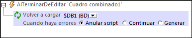 •Después de que el usuario seleccione una opción de la lista desplegable del cuadro combinado, la estructura $DB1 debe volver a cargarse (esto es necesario porque los datos que se deben cargar de la fuente de datos de BD dependen de la selección realizada por el usuario en el cuadro combinado. Es decir, cuando cambien los valores del cuadro combinado también debe cambiar la selección de datos.) Para poder volver a cargar la estructura $DB1 basta con agregar una acción Volver a cargar al evento AlTerminarDeEditar del cuadro combinado. Para ello basta con hacer clic con el botón derecho en el cuadro combinado y seleccionar Acciones de control para AlTerminarDeEditar. En el cuadro de diálogo "Acciones" que aparece añada la acción Volver a cargar tal y como puede ver en esta imagen: