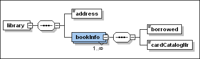 2.En la vista Esquema de XMLSpy haga clic en el icono Mostrar diagrama ic_component del elemento library para ver su modelo de contenido.