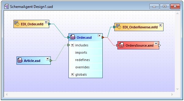 La ventana de diseño es el espacio de trabajo donde puede ver y editar los archivos que tienen las extensiones de archivo definidas. Actualmente SchemaAgent es compatible con estos archivos:
