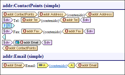 | Nota: | las imágenes anteriores muestran el esquema correspondiente en la vista Esquema de Altova XMLSpy. |