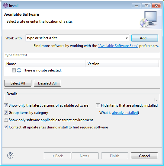 1.En Eclipse seleccione el comando de menú Help | Install new software.