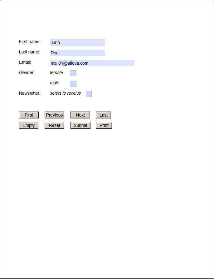 Los formularios PDF son formularios que están dentro de un documento PDF y que se pueden editar. De este modo el usuario puede agregar datos al documento PDF. Los datos se pueden guardar con el documento PDF, pero también se puede extraer en formato FDF y XML. En StyleVision puede crear un diseño para publicarlo en formato PDF que contenga controles de formulario PDF que permitan la entrada de datos y la ejecución de acciones del usuario.