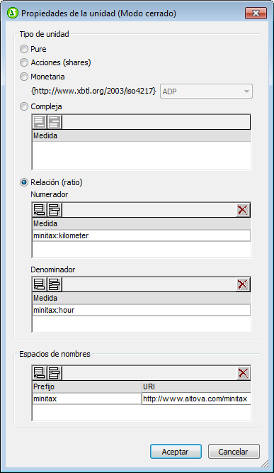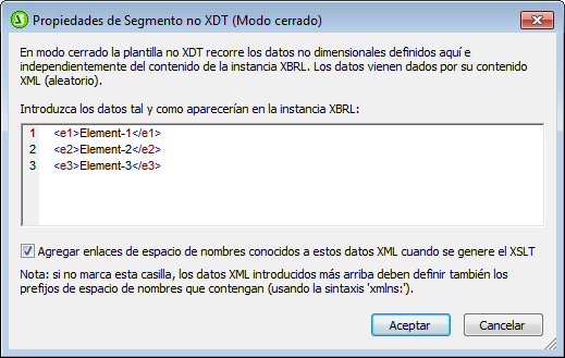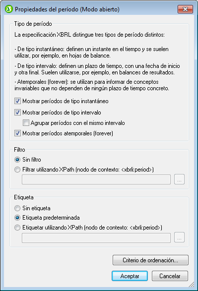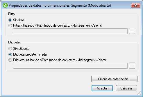 Todos los componentes tienen un conjunto de propiedades propias. Para editar las propiedades de un componente (desde el Asistente para tablas XBRL o Asistente para gráficos XBRL) haga clic en el icono Editar propiedades del componente (el botón blanco con tres puntos de la imagen).