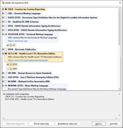Mediante el archivo .altova_schemas que descargó del sitio web de Altova: haga doble clic en el archivo para ejecutar Gestor de esquemas, que instalará los esquemas que haya seleccionado.