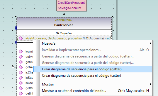 2.Seleccione la opción del menú contextual correspondiente (p. ej. Generar diagrama de secuencia a partir del código... (getter/setter)).