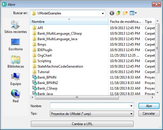 1.En el cuadro de diálogo "Abrir" haga clic en el botón Cambiar a URL.