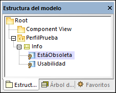 3.Haga clic en la clase y seleccione el estereotipo «Info» en la ventana Propiedades. Observe que la propiedad "EstáObsoleta" ya contiene su valor predeterminado.