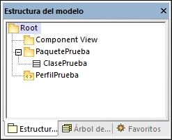 2.Arrastre los paquetes "PaquetePrueba" y "PerfilPrueba" desde la ventana Estructura del modelo hasta el diagrama.