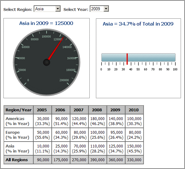 Los medidores sirven para representar un solo valor y su relación con un valor máximo y un valor mínimo. |