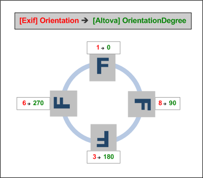 Este atributo transforma el valor entero de la etiqueta Exif Orientation (1, 8, 3 o 6) en el correspondiente valor en grados (0, 90, 180, 270), tal y como describe el diagrama más abajo.