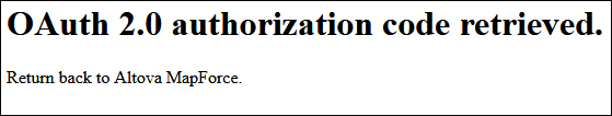 MapForce also notifies you that the OAuth 2.0 authorization code has been retrieved successfully.