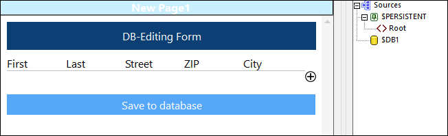Lorsque la solution 04-EditRecords.mtd démarre, la table est vide (voir la capture d'écran ci-dessous). C'est le cas puisque la table a $PERSISTENT en tant que sa source de page et $PERSISTENT sont vides. Veuillez également noter que la source de page $DB1 est vide. C'est le cas puisque elle a également été définie en tant que Charger des données = Pas automatiquement. Dans le volet des Sources de page, cliquez avec la touche de droite sur $DB1 pour voir la valeur de son paramètre Charger les données.