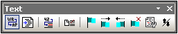 Vous pouvez éditer et parcourir les signets en utilisant les commandes dans le menu Édition et dans la barre outils Texte. Vous pouvez insérer les signets peuvent être insérés avec la commande Édition | Insérer/Supprimer signet, vous permettant de marquer une ligne dans le document pour la référence. Un signet peut être supprimé en sélectionnant la ligne marquée et puis en sélectionnant la commande Édition | Insérer/Supprimer signet. Pour parcourir les signets d'un document, utiliser la commande Édition | Aller au signet suivant et Édition | Aller au signet précédent. Ces commandes de signet sont aussi disponibles en tant qu'icônes dans la barre d'outils Texte (capture d'écran ci-dessus).