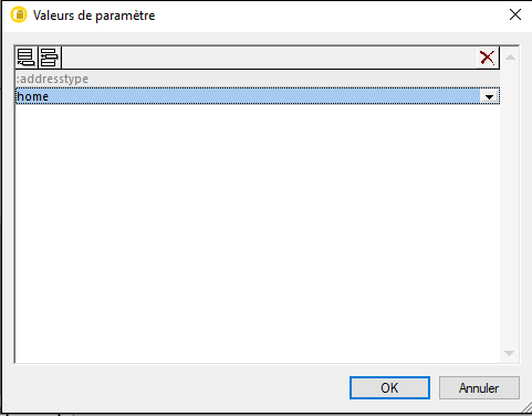 3.Double-cliquez sur la ligne sous :addresstype, tapez « home » comme valeur de paramètre, puis cliquez sur OK.