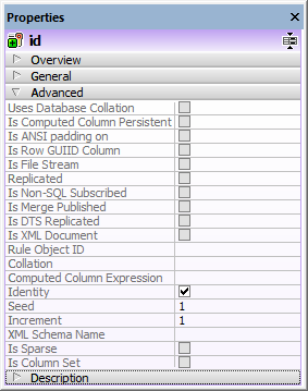 3.Si applicable, changez les valeurs par défaut dans les champs Seed et Increment. Seed spécifie la valeur initiale qui sera générée par la base de données tandis que Increment spécifie jusqu’où la valeur initiale devrait être incrémentée à chaque insertion. Normalement, ces valeurs sont 1 et 1, respectivement.