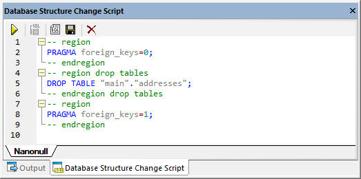 DatabaseSpy génère le script requis et l’affiche dans la fenêtre Script de changement de structure de la base de données, par exemple :