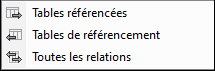 La commande Ajouter des tables connexes ouvre un sous-menu qui ajoute des tables qui sont soit référencées par ou référencent la table sélectionnée.