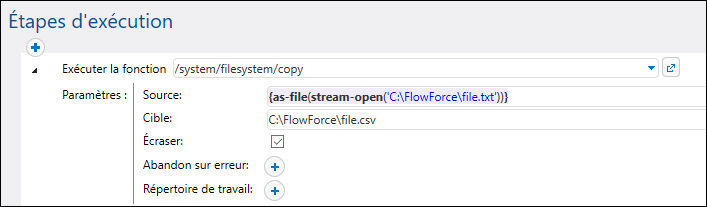 La tâche suivante ouvre un fichier existant possédant l'extension .txt et le réécrit dans le même répertoire avec l'extension .csv :