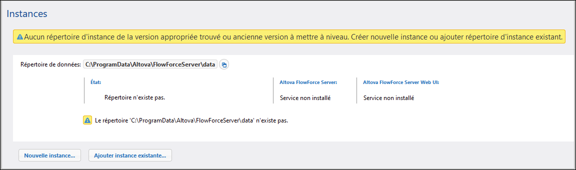 2.Sélectionnez un répertoire instance-data existant qui contient flowforce.db et d’autres fichiers d’instance de FlowForce.