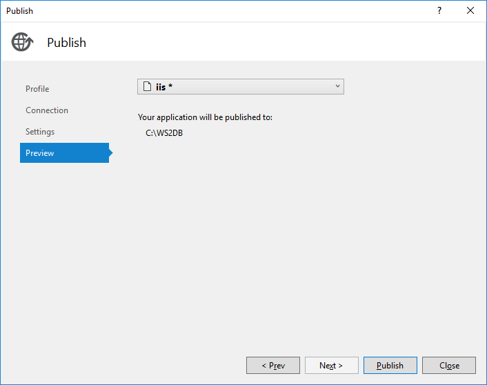 Sélectionnez « Système de fichiers » comme méthode de publication et choisissez un dossier de destination (dans cet exemple, « C:\WS2DB »).