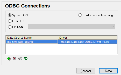 Note : Si vous obtenez l'erreur suivante : « Le pilote a retourné invalide (ou n'a pas pu retourné) SQL_DRIVER_ODBC_VER: 03.80", puis assurez-vous que le chemin vers le client ODBC (par exemple, C:\Program Files\Teradata\Client\16.10\bin) existe dans votre variable d’environnement PATH du système. Si ce chemin manque, ajoutez-le manuellement.