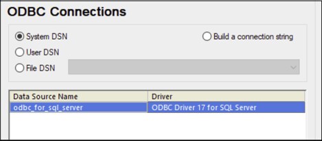 Pour télécharger et installer Microsoft ODBC Driver for SQL Server depuis le site web Microsoft, voir https://docs.microsoft.com/en-us/SQL/connect/odbc/download-odbc-driver-for-sql-server. Cet exemple utilise le Pilote Microsoft ODBC 17 pour SQL Server pour se connecter à une base de données SQL Server 2016. Vous pouvez tout à fait télécharger une version de pilote ODBC différente, selon la version du Serveur SQL auquel vous souhaitez vous connecter. Pour plus d'informations concernant les versions de pilote ODBC prises en charge par votre base de données Serveur SQL, veuillez consulter les exigences de système du pilote.