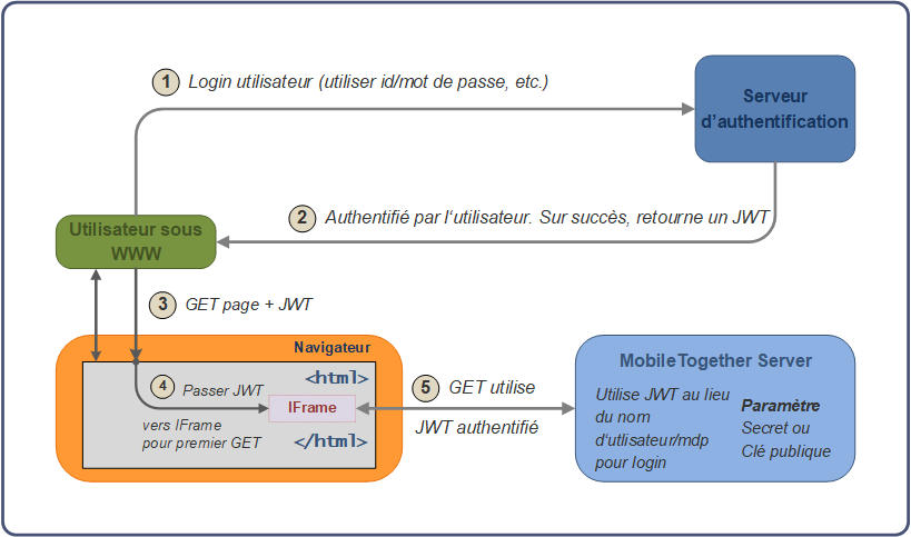 •Le JWT est transmis au IFrame avec le premier appel que la solution passe à MobileTogether Server.