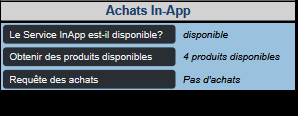 Dans l'exemple de projet, cette fonctionnalité a été activée en tant qu'action clic-bouton sur le bouton Le Service InApp est-il disponible ? (voir la capture d'écran ci-dessous).