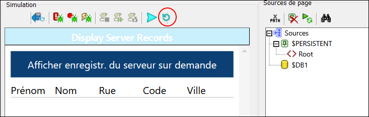•Dans (3), les données sont téléchargées depuis le serveur $DB1 uniquement lors d'un clic du bouton Actualiser. Ce n'est qu'à ce moment-là que les données sont copiées dans $PERSISTENT et affichées dans la table, en raison des liens de la source de page dans la table. C'est la raison pour laquelle la table est vide jusqu'à ce que vous cliquiez sur le bouton Actualiser.