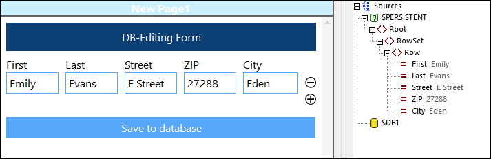 •Les données dans $PERSISTENT peuvent être enregistrées sur le serveur en cliquant sur Enregistrer dans base de données. Voir la section Enregistrer des données éditées en utilisant des clés primaires et OriginalRowSets ci-dessous.