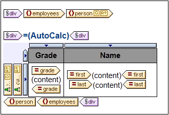 10.Above the table provide a heading for the table. Since each table represents a department, the name of the department can be dynamically obtained from the current context by using an Auto-Calculation with an XPath expression that calls the current-grouping-key() function of XPath 2.0/3.0.
