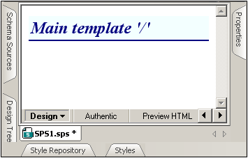 Sidebar windows can be docked in the StyleVision GUI or can be made to float on your screen. To dock a window, drag the window by its title bar and drop it on any one of the four inner or four outer arrowheads that appear when you start to drag. The inner arrowheads dock the dragged window relative to the window in which the inner arrowheads appear. The four outer arrowheads dock the dragged window at each of the four edges of the interface window. To make a window float, (i) double-click the title bar; or (ii) drag the title bar and drop it anywhere on the screen except on the arrowheads that appear when you start to drag.