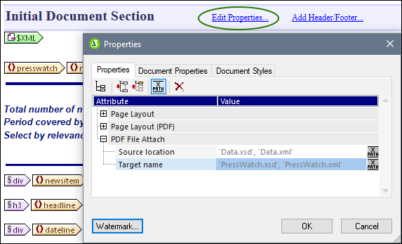 1.In the Initial Document Section, click Edit Properties (see screenshot below).