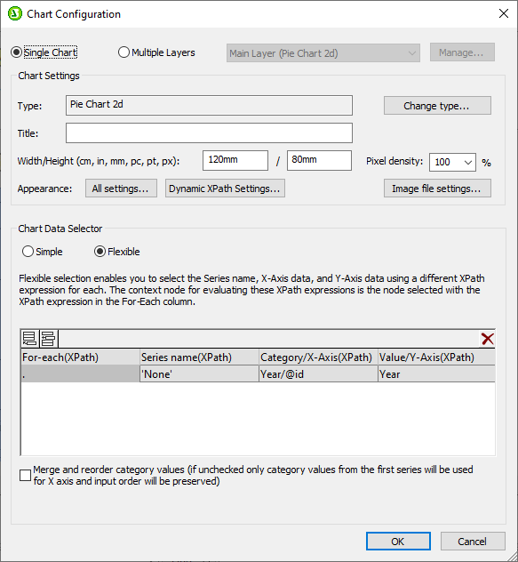 The Insert Chart command pops up the Chart Configuration dialog (screenshot below), in which you can specify the settings for the chart and make the data selection that determines what data is represented in the chart.
