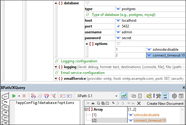 Pour plus d'informations sur les expressions XPath/XQuery au format JSON, qui peuvent être utilisées avec des documents YAML, voir Expressions XQuery pour JSON.