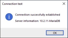 7.Cliquez sur Suivant et terminez l’assistant. D'autres paramètres seront éventuellement nécessaires, selon les cas (par exemple, des certificats SSL si vous vous êtes connecté à MariaDB par le biais d'une connexion sécurisée).