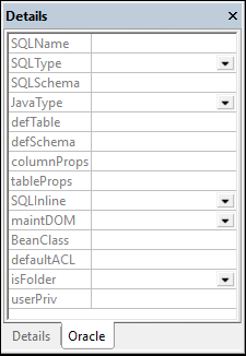 Un onglet Oracle est créé dans l'Assistant à la saisie Détails, vous permettant d'ajouter des attributs, y compris des attributs spécifiques à XDB aux éléments de schéma comme xsd:complexType et xsd:element.