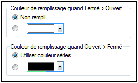 Si les valeurs d'ouverture et de fermeture sont définies en tant que séries, vous pouvez choisir les couleurs et si vous souhaitez ou non que les chandeliers soient remplis si la valeur de fermeture est plus importante que la valeur d'ouverture.