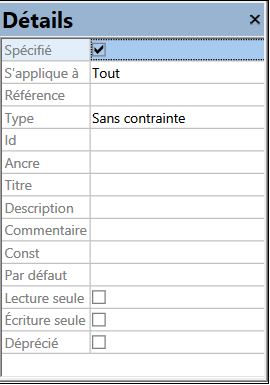 •Spécifié=false ne fonctionne qu'avec Scope=Tous et Type=Sans contrainte.