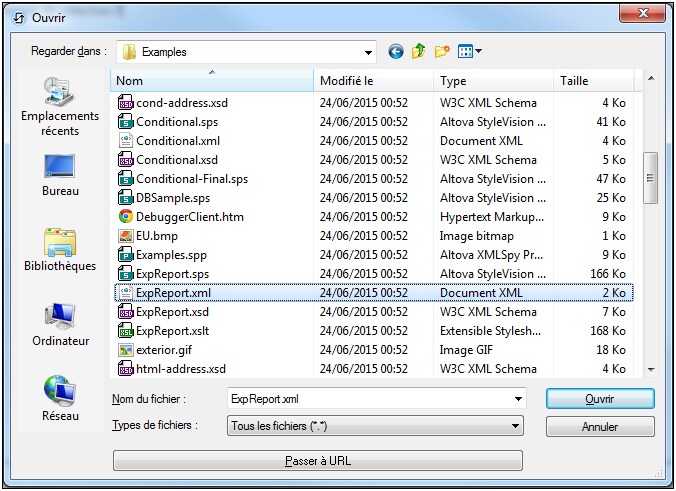 Sélectionner les fichiers via des URLPour sélectionner un fichier via une URL (pour l'ouvrir ou l'enregistrer), procédez comme suit :