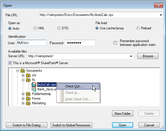 •WebDAV をサポートするサーバーと Microsoft SharePoint Servers のみで参照機能を使用することができます。サポートされるプロトコールは FTP、 HTTP および HTTPS です。 •ファイルを開く際のロード処理を更に管理するには、ローカルのキャッシュ または(ファイルが以前にロードされている場合スピードを向上する)プロキシ のサーバーからファイルをロードします。 (ファイルが事前にロードされることにより更に処理スピードを向上することができます)。また、電子出版またはデータベースシステムなどの作業中のファイルを再ロードして、 「再ロード」 オプションを選択します 。