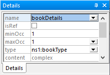 6.With this element still selected, in the Details entry helper, select ns1:bookType from the type drop-down list.