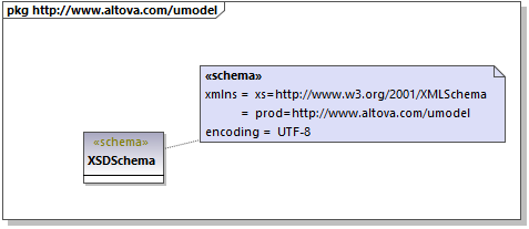 2.The secondary namespace https://www.altova.com/umodel mapped to the "prod" prefix, which is also the target namespace.