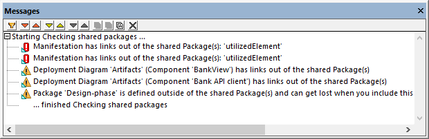 Click Yes to share the package despite of the errors; otherwise, click No. The Messages window provides information about each of the external links.